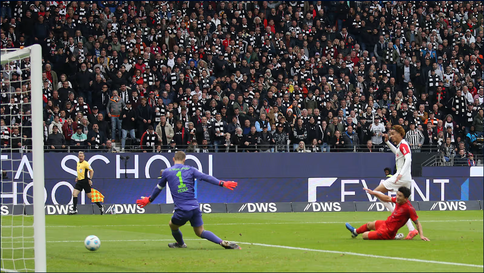 Lastimosamente, un pase con túnel incluido de Ansgar Knauf sobre Aleksandar Pavlovic dejó en un mano a mano a Omar Marmoush con Raphael Guerreiro y el egipcio superó al portugués, antes de batir a Manuel Neuer. Más tarde, con el Bayern todavía dominante, Marmoush recibió un balón en el área del Bayern, superó la marca de Upamecano y centró para Hugo Etikité, quien puso el 2-1 con un remate al borde del área.rn