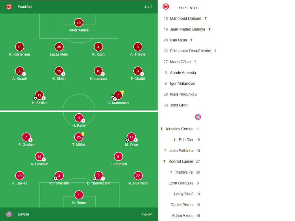 Kim Min Jae adelantó al Bayern con tan solo 14 minutos de juego, antes de que el Eintracht pudiese remontar el marcador con anotaciones de Omar Marmoush (22’) y Hugo Ekitike (35’). Los Bávaros se pusieron nuevamente delante en el marcador gracias a una anotación de Dayot Upamecano (38’) y Michael Olisé, pero el equipo de Fráncfort igualó en el último suspiro con un contragolpe de Marmoush (90+4’).